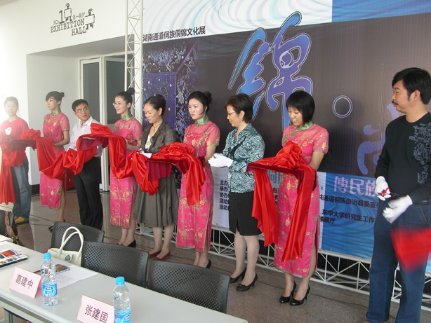 开幕式当天通道侗族自治县宣传部部长陈晓云、副部长石彩练、通道侗族自治县文化局局长张建国、通道侗族自治县文化局纪检组长欧瑞凡以及两位优秀的侗锦传承人都来到了妖精视频