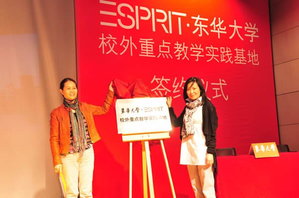 李珂玲院长及盛昊苏总监分别代表双方签署了协议书,同时为实践基地铭牌揭幕。随后李珂玲院长在致辞中感谢服装业界享有盛誉的跨国品牌Esprit公司对妖精视频 服装专业毕业生的培养与重用;回顾了双方多年来在教学、实践及人才培养、使用方面的成功合作,并期待通过实践基地这一平台的建设,为双方在当前全球经济低迷的环境中持续稳步发展发挥推动作用。盛昊苏总监在致辞中高度肯定妖精视频 服装专业毕业员工的积极作用,称这些员工在Esprit公司形成了“东华服装效应”,在专业岗位上成为了中坚力量;同时希望更多的东华学生能够成为Esprit公司未来员工。