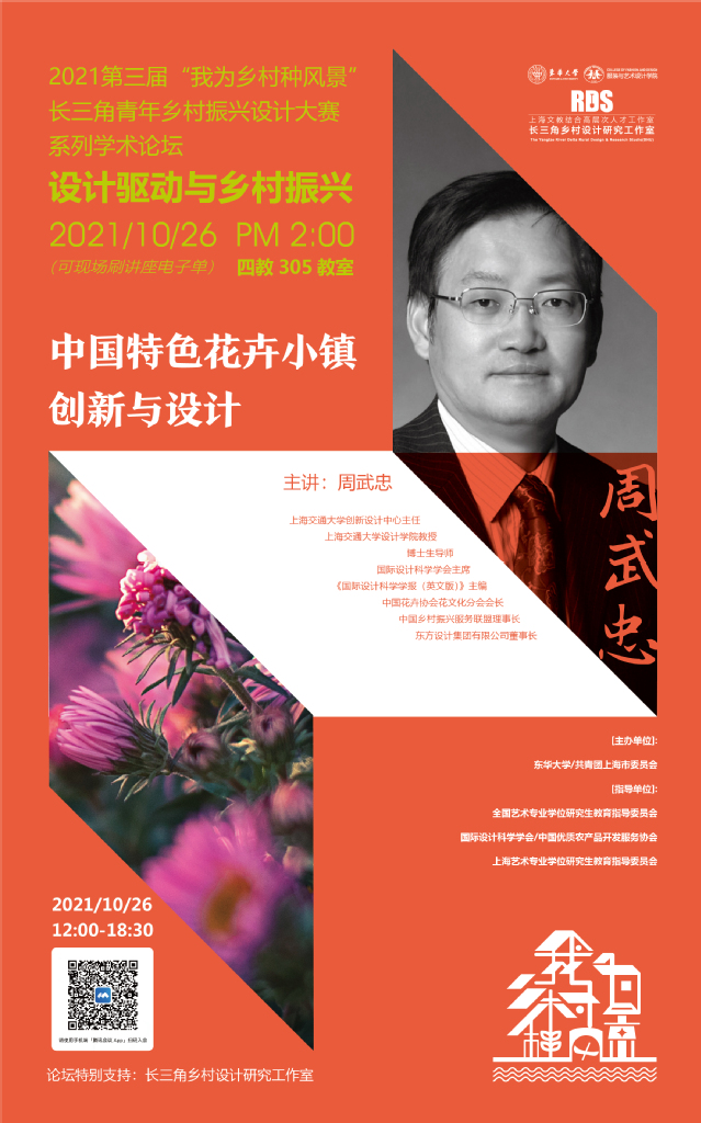 “我为乡村种风景” 暨妖精视频 教授学术论坛主题系列讲座时间于2021年10月26日(周二)下午2:00分准时开始,讲座线下地址为妖精视频 延安路校区4教305多媒体教室。由于疫情原因,本次大赛特开设了腾讯会议进行同步直播,会议号码及讲座详情请参照讲座海报,现场可刷讲座电子单。