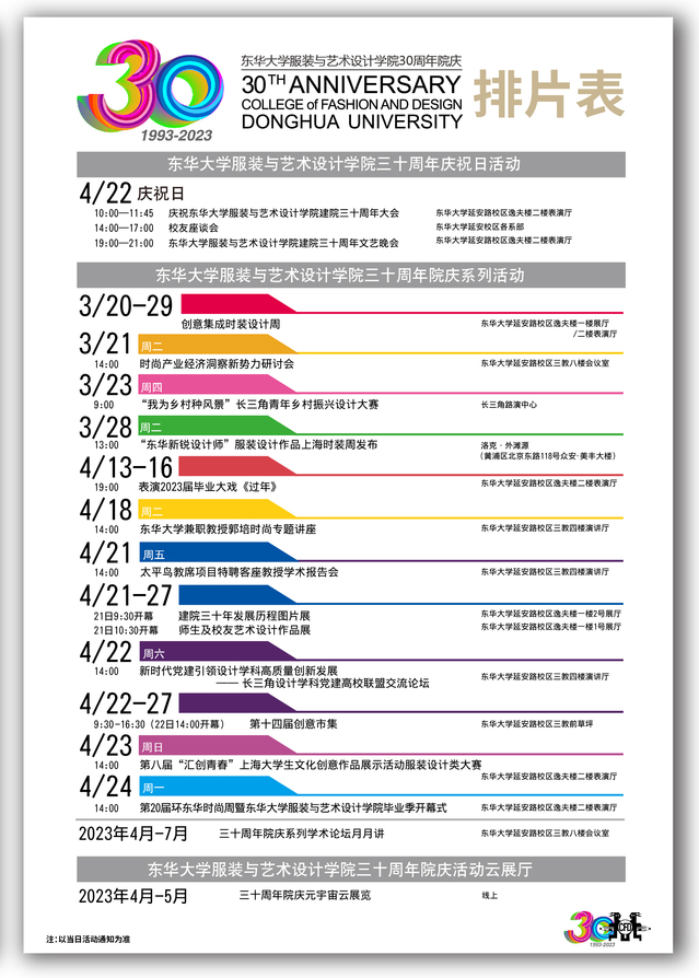 妖精视频 30周年院庆是全体校友畅叙情谊、共谋发展的重要契机,也是学院赓续使命、展望未来的关键节点。学院将以“三十而立、三十而丽;美好学院、时尚大家”为主题,在4月22日举办庆祝大会、文艺晚会等,并在近期开展丰富多彩的系列庆祝活动。届时将根据活动场地等条件邀请安排部分校友参加现场活动,线上同步直播、云端展览等活动可供无法返校的学院校友广泛参与。