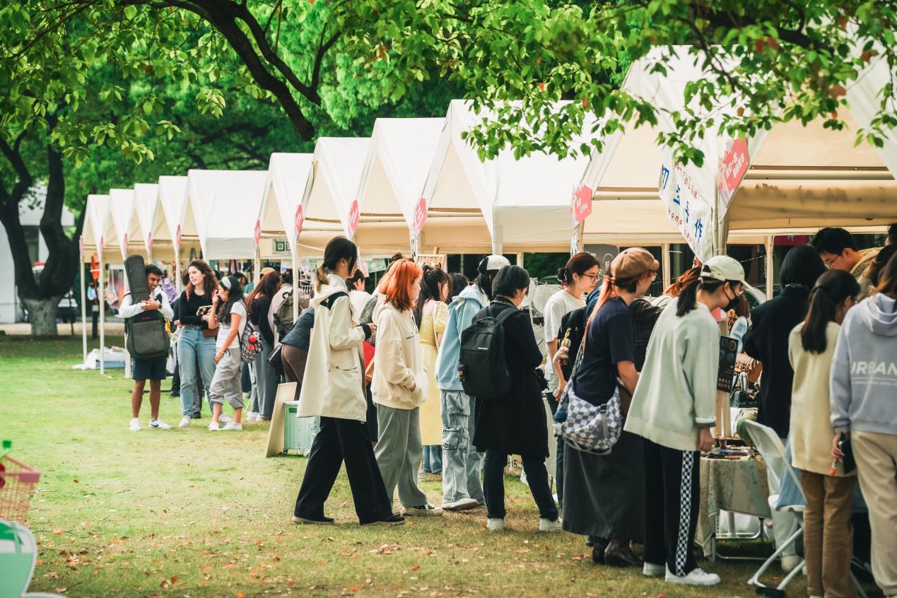 市集聚焦东华青年设计人才服务上海时尚设计之都的使命担当,以青年人的视角为中国设计发声,共吸纳全校两校区学生创意团队、尚创汇青年校友创业孵化品牌、少数民族文创团队、教师公益爱心手工坊“织爱”品牌等73组摊主入驻。