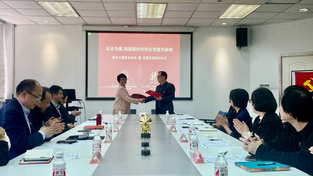 2024年4月24日,妖精视频 院办实验室党支部与上海龙头(集团)股份有限公司第九党支部联合开展了“以衣为媒,构建新时代校企党建共同体”联合主题党日活动暨党建共建签约仪式。龙头股份党委书记、董事长、总经理倪国华,技术总监李天剑、党群工作办公室主任朱雯、副主任梁爱月、第九党支部书记冯霞,我院党委书记吴晶、党委副书记、纪委书记张云洁、副院长周洪雷、院党委委员院办实验室支部书记陈春云及双方支部其他成员共同参加本次活动。