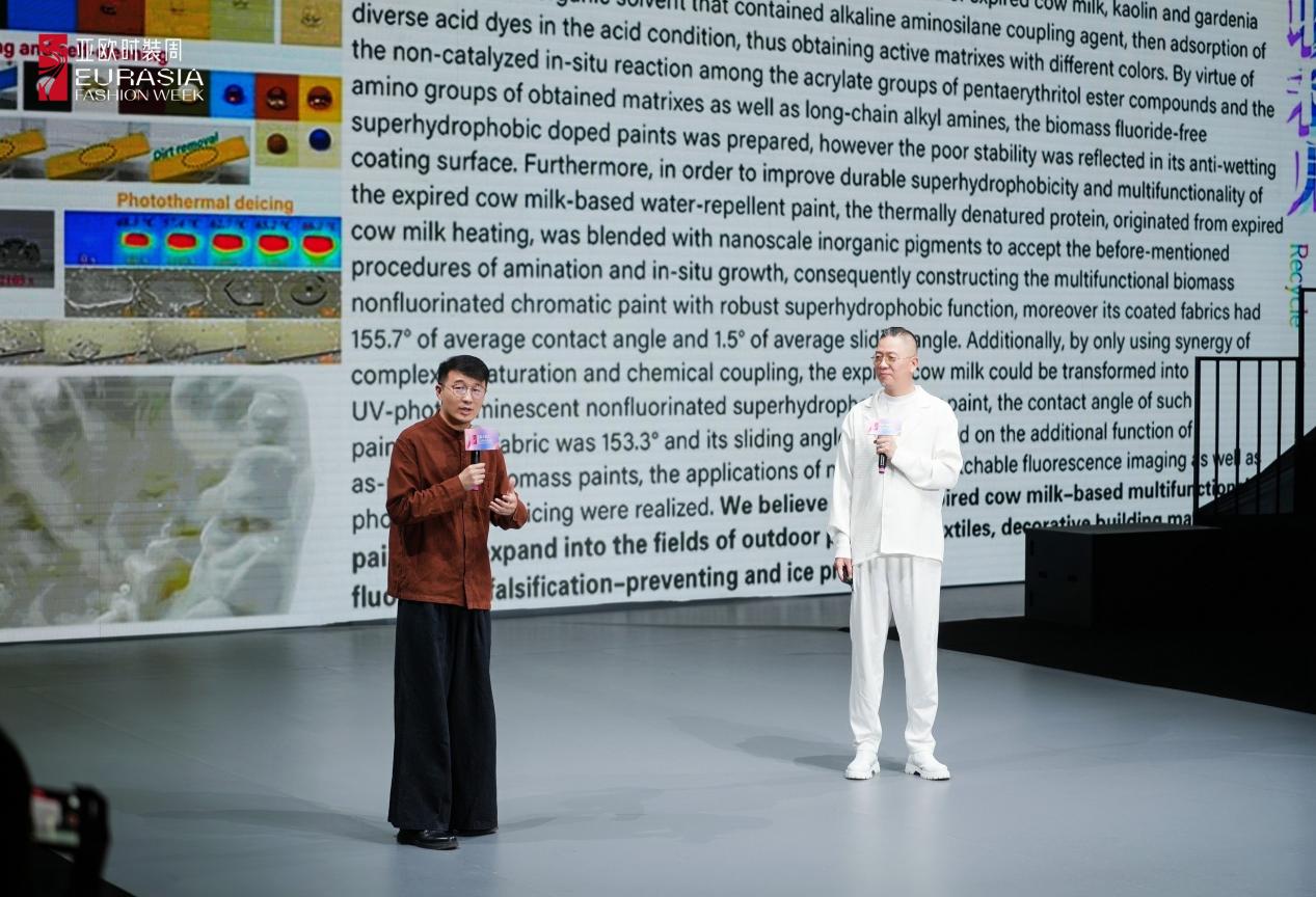 亚欧时装周发布会上,沈沉教授首先作了主题阐释和意义宣讲,团队主要成员代表的五位博士研究生及一位应届本科毕业生,依据报告宗旨,围绕 “博关据典”“自然法则”“大美巴扎”“未去已来” 四个系列,多角度、多层次从思政、教学、科研以及考古、田野调查等多方面作了深入具体的诠释。