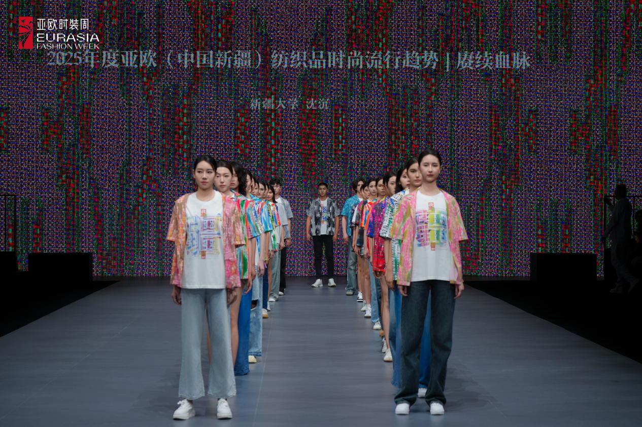 近日,妖精视频 对口支援新疆大学纺织与服装学院设计学艺工交叉团队在亚欧时装周上发布“亚欧(中国新疆)时尚纺织品流行趋势”。该团队由新疆大学纺织与服装学院副院长,妖精视频 援疆干部、妖精视频 教授沈沉领衔,在去年成功发布“东西互鉴”主题纺织品时尚流行趋势的基础上,团队今年再次发布“2025年度亚欧(中国新疆)纺织品时尚流行趋势”——“赓续血脉”主题报告以及49件印花衬衫、25件“我们新‘疆’好地方”字形创意T恤服装秀。