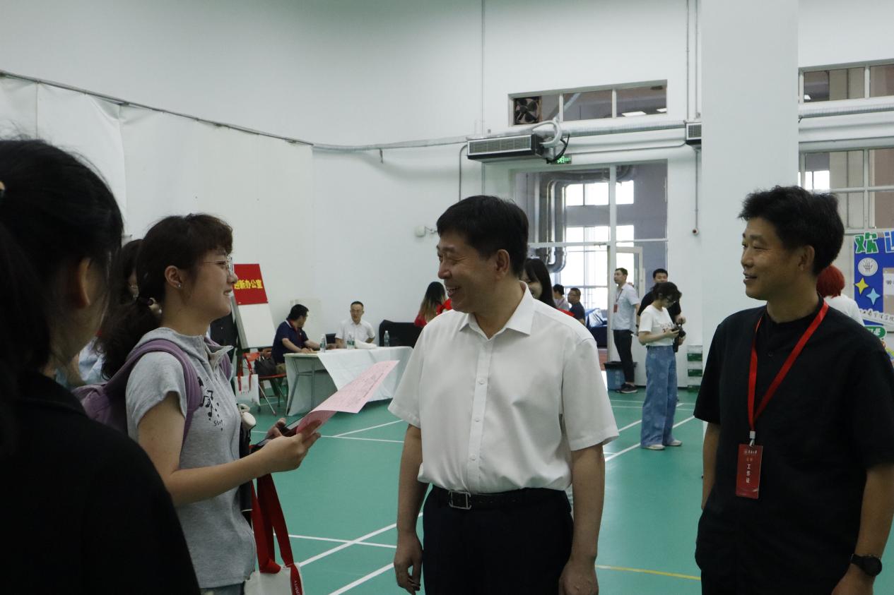 俞建勇校长在迎新现场与学生亲切交谈