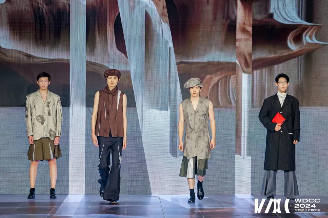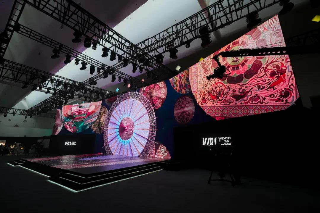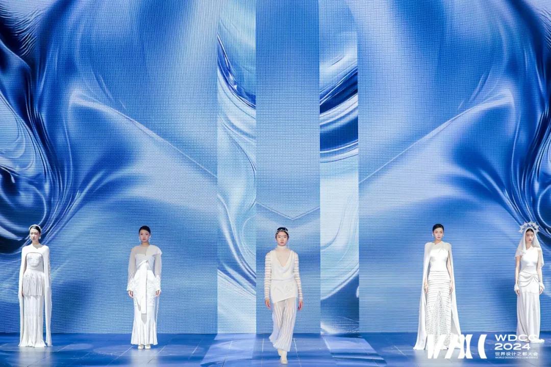 传统的T台化身成舞台之上动态的“来自水中的鳞”和“为天空而生的羽”,演绎出奇幻并具未来感的“诗画自然”和“海上音韵”。多块大屏和裸眼3D视效的“加持”,置身其中,让观者在新质生长、复始旋转的巨大时空舞台上畅想,体验感十足!29日下午,“衣尚东方”时尚秀演在世界设计之都大会主会场拉开大幕。