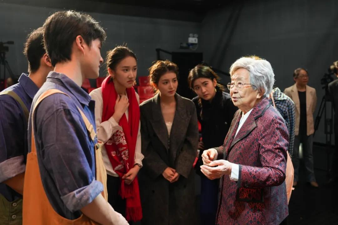 演出结束后,黄宝妹在演员和观众的掌声中登上舞台,她表示很高兴看到大家将自己的故事改编成生动的话剧,同学们的演绎很精彩,感谢学校对这部话剧排演的支持。