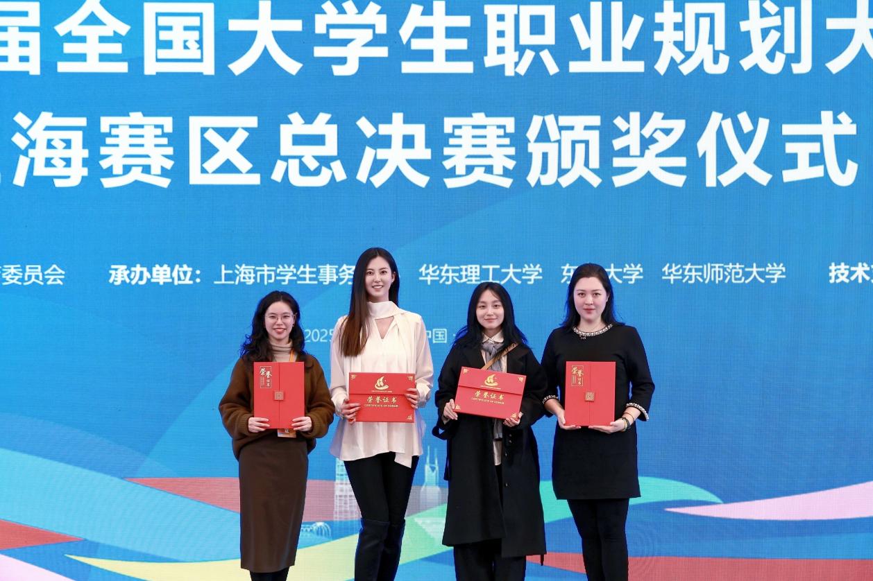 近日,由上海市教育委员会主办的第二届全国大学生职业规划大赛上海赛区总决赛圆满落幕,经过激烈角逐,我院艺术设计专业22级硕士研究生王晟旭斩获就业赛道高教研究生组金奖,数字媒体艺术专业23级本科生石雯嘉斩获成长赛道高教组金奖,于翔、金妙颖获优秀指导教师称号。