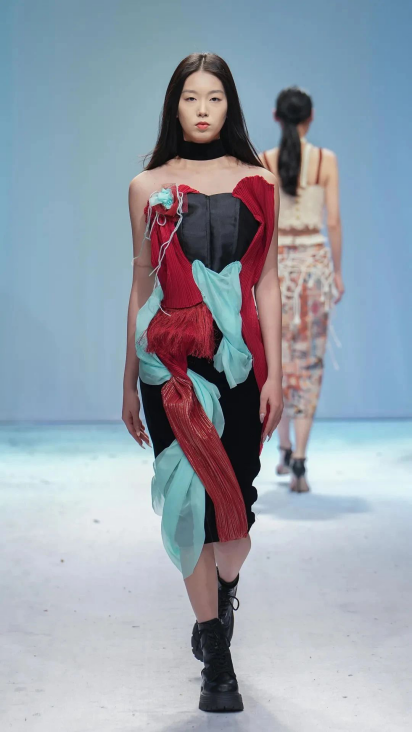 在数智时代大背景下,青年设计师要如何发挥创造性与主体性?服装科技创新与时尚艺术设计的融合之路将通往何方?从“创意”“创想”到“创新”“创造”,2025新年伊始,第十届“东华·创意集成时装设计周”如约而至。本次设计周扣紧服装设计人才培养的量与质,强调理论与实践并重,鼓励学生在传统与现代、艺术与科技之间自由穿梭,汇聚服装艺术设计专业从本科到研究生各年级各模块的教学成果,以动态秀、静态展等多种形式呈现1100余套原创作品,既是对学生专业课程学习的一场“期末大考”,也是学院探索创新人才培养路径的一次“汇报展演”。