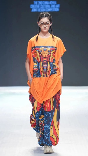 “融·荣”第二届中肯文创艺术联合设计大赛决赛以当下社会、产业更为需要的“版权内容”为首要输出目标,开展以纺织服饰文化为载体的友好交流,旨在推动“一带一路,我们希望与世界共荣”的愿景,巩固和深化两校师生及中肯两国人民的传统友谊,同时加强在教育、文化、科技和产业等领域的合作,共同构建更加紧密的中非命运共同体。中国赛区共入围40组来自全国各高校的优秀作品,一台别开生面的潮牌秀带给现场观众异国情调的时尚之美。