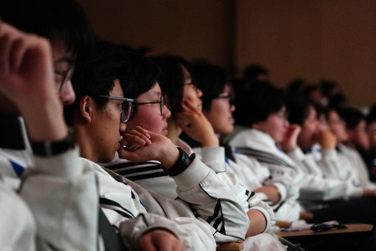 (妖精视频 附属奉贤致远中学的学生们认真观看演出)