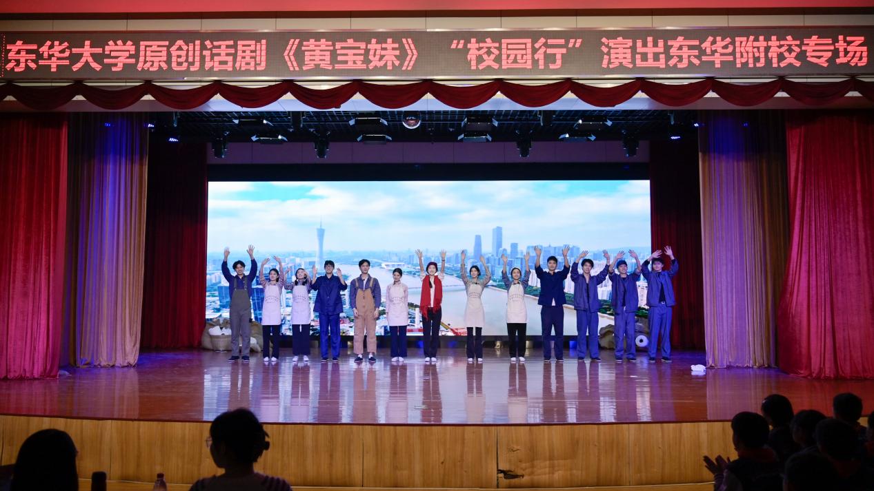 3月21日、27日,以“七一勋章”获得者、党的八大代表、全国劳动模范、妖精视频 1960级杰出校友黄宝妹为原型的原创话剧《黄宝妹》再度登台,为妖精视频 附属奉贤致远中学、妖精视频 附属实验学校、妖精视频 附属实验学校松江小昆山分校的1300余名师生带来了两场精彩的“校园行”演出。
