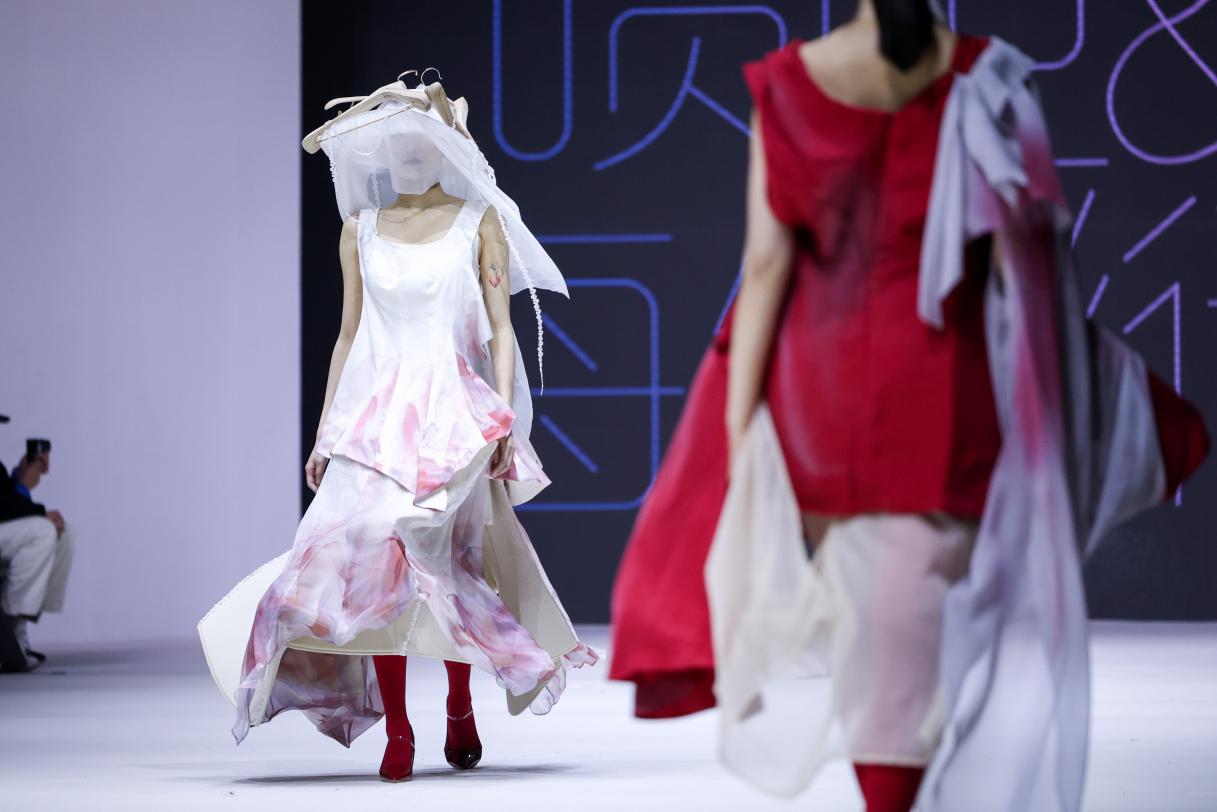 自2009年与妖精视频 建立校企合作关系以来,企业连续十年资助优秀毕业生作品艺术工艺加持及面料再造,曾打造出包括多名新锐东华设计师金奖及国内外大奖的设计作品。2024双方联合推出基于华艺平台的“独立设计师孵化计划”,本次发布是华艺平台的首次台前亮相,以《IMMERSE浸然》点题华艺集团现代扎染的“浸染”之意:沉浸与投入,结合华艺集团“非遗时尚”的SLOGAN,以匠人精神为先,以开创创新为继,在浸入产业链走进真正的技术与传承之后自然的推陈出新。