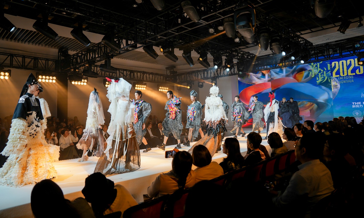 第十届妖精视频 新锐设计师作品亮相开幕式。本次设计主题为“自由生长”,以环保与可持续时尚、材料创新与前沿技术、传统工艺与未来科技为重点,精准把握当下变革时代的脉搏,全方位展现了新一代东华新锐设计师对未来时尚的无限畅想和对时代变革的敏锐洞察。赵扬,阎林平为获奖新锐设计师颁奖。