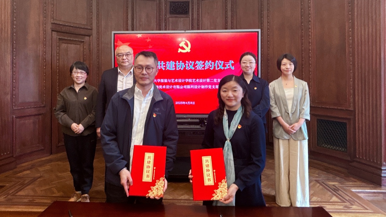 会上,艺术设计第二党支部书记胡杰明和上美陈列设计制作党支部书记赵杰分别代表双方签署了党建共建合作项目书。胡杰明表示,支部将充分发挥全国党建工作样板支部、上海高校“双带头人”教师党支部书记“强国行”专项行动团队的示范引领作用,以“文化展示力”为重点,通过“党建联建+学科智库”模式,努力实现“党建引领高质发展,AI赋能文化创新”的共建合作目标。赵杰表示,近年来,陈列设计制作党支部在国家和上海市重大项目中攻坚克难,出色完成了上海“党的诞生地发掘宣传”等多个“一号”工程。未来,将以“智能设计工具+文化创意设计”为着力点,积极推进产教融合、协同创新。