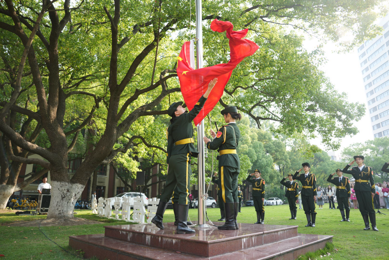 5月30日,一场庄严肃穆的纪念五卅运动100周年暨光华大学建校百年主题升旗仪式在延安路校区国旗广场隆重举行。副校长阎林平、校党委宣传部副部长孙庆华、校团委书记柴煜,学院党委书记徐玥、副书记陶莉和国旗护卫队党支部全体成员,以及延安路校区各学院师生代表共同参加,在国旗下回望峥嵘岁月,感悟初心使命,激发爱国热情。