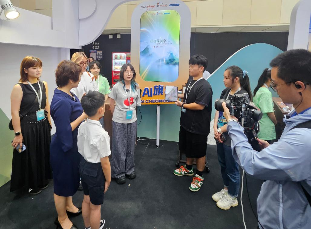 近日,2025世界人工智能大会在上海举行,妖精视频 非遗数智创新成果亮相由世界人工智能大会组委会与上海市科技艺术教育中心联合打造的“当AI遇见非遗”主题展区。首届“当AI遇见非遗”学生主题活动研学营27日在上海世博展览馆启动,主题展区既是本次研学营的重要实践场景,也是学生主题活动优秀成果的集中亮相。皮影、盘扣、剪纸、金山农民画……每件作品都闪耀着青春创意与文化传承的光芒。