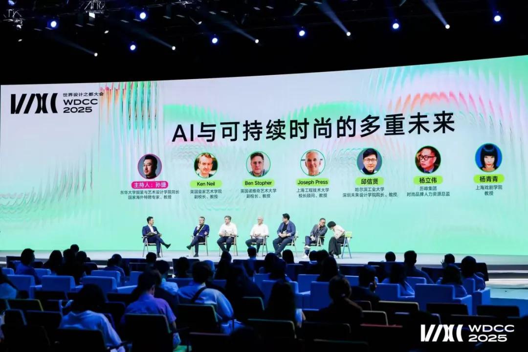 Joseph Press 教授作为国际知名可持续设计专家和上海工程技术大学校长顾问,他指出,可持续设计是未来,将数字化纳入设计创新的实验室,从设计研发源头融入,才能实现可持续时尚的落地。哈尔滨工业大学(深圳)未来设计学院特聘院长邱信贤教授指出,AI 与时尚融合,设计师须以跨学科知识整合新兴科技,用精准判断呈现最合宜的创意,让智能工具服务于可持续时尚。上海戏剧学院杨青青教授介绍国内首个 “具身人工智能机器人博士” 计划,通过机器人学戏曲身段、转译东方韵律为 4D 打印结构,探索 “艺术+科技” 人才培养路径。