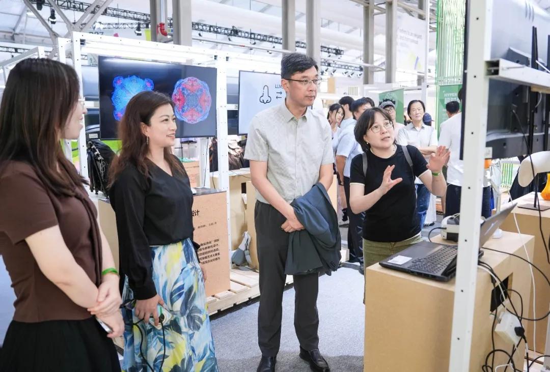 开幕式当日,主展馆“超时尚——人工智能与可持续时尚的多重未来”展览成为大会焦点,展览由我院院长孙捷担任主策划,SCF院长李峻担任策展人,我院黄更副教授担任展览设计。展览以“太空经济”“循环经济”“智慧经济”三大板块,对多重科技、文化,进行超业态的时尚串联,以新质“超时尚”生产力,建设美好未来。展览展示了妖精视频 10组科研团队在材料、纺织、设计创新以及人工智能等领域近30件展品。我院王亚男、田玉晶、施晓黎等老师的作品参与展出并获得关注。展览被大会特别授予“绿色展区”荣誉!