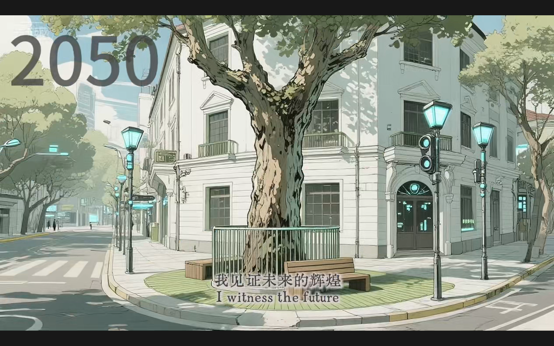 《梧桐眼》是上海的故事,也是时间的回响。作品以AI为笔,展现出丰富的想象创意和对上海这座城市的热爱。同时,作品以上海标志性树木——一棵百年梧桐树的视角看上海,通过视觉形式展现了1921到2050年百余年间的城市变迁,用AI将上海的过去、现在、未来巧妙融合在一起。郑千亿同学谈到,“我认为AI不是替代,而是作为工具帮助我们把脑海中的想象更快、更自由地呈现出来。但创意本身仍然来自我们的观察、情感、思考,这也是我在AI课程学习和创作过程中最深刻的体会。”