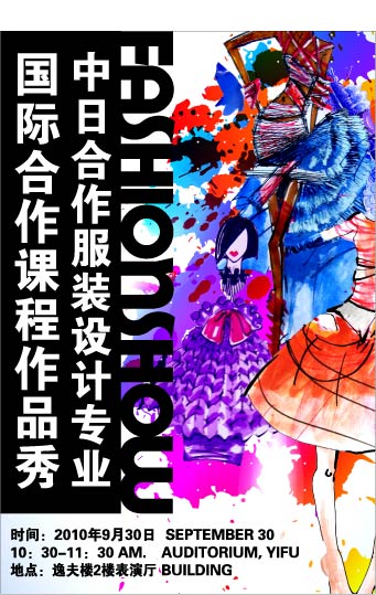 内容:中日合作服装设计工程国际合作课程作品秀 时间:2010年9月30日10:30—11:30AM